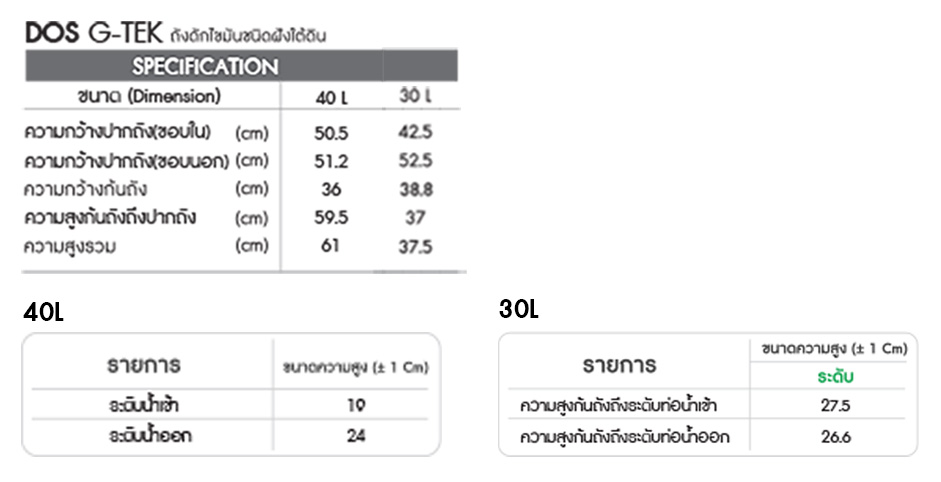 2. รุ่น (ลิตร) 30L , 40L