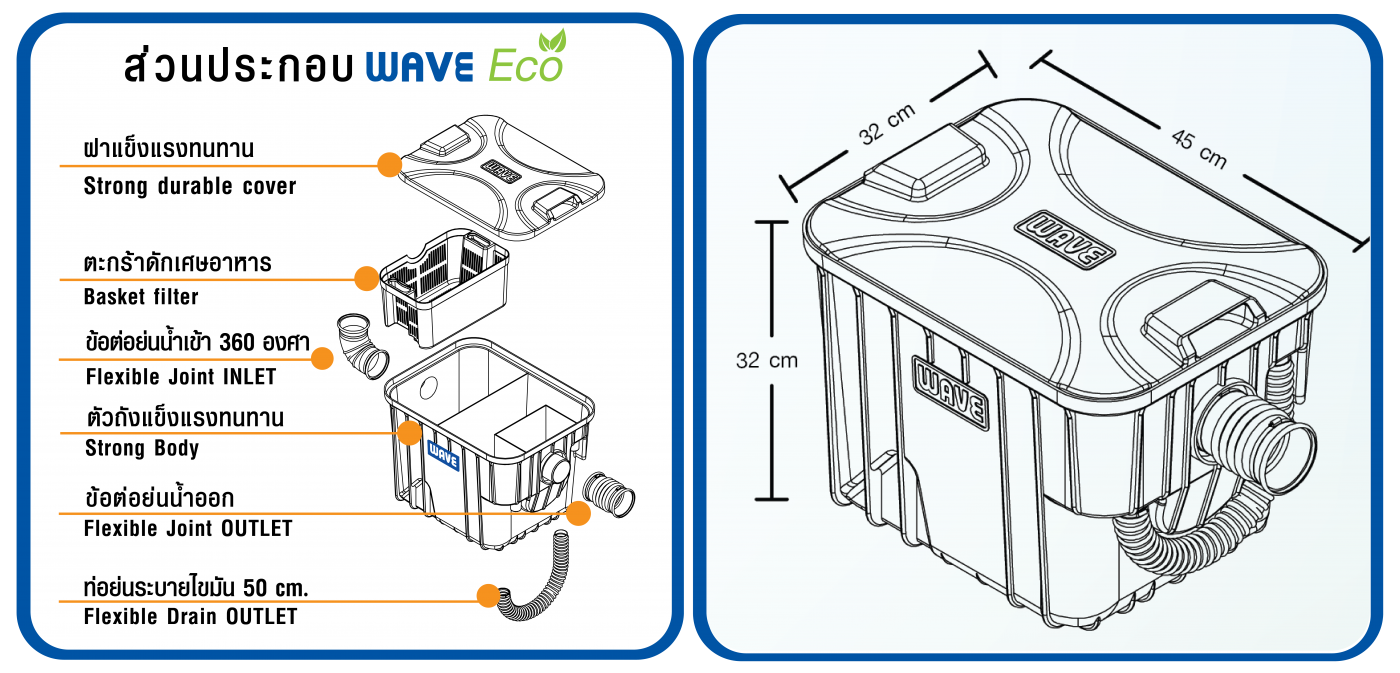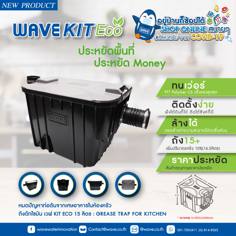 ถังดักไขมัน WAVE รุ่น WKE (WAVE KIT ECO) แข็งแรง ทนทาน มาตรฐานสากล หมดปัญหาท่อตัน ปลอดภัย ตอบโจทย์ทุกไลฟ์สไตล์อย่างลงตัว