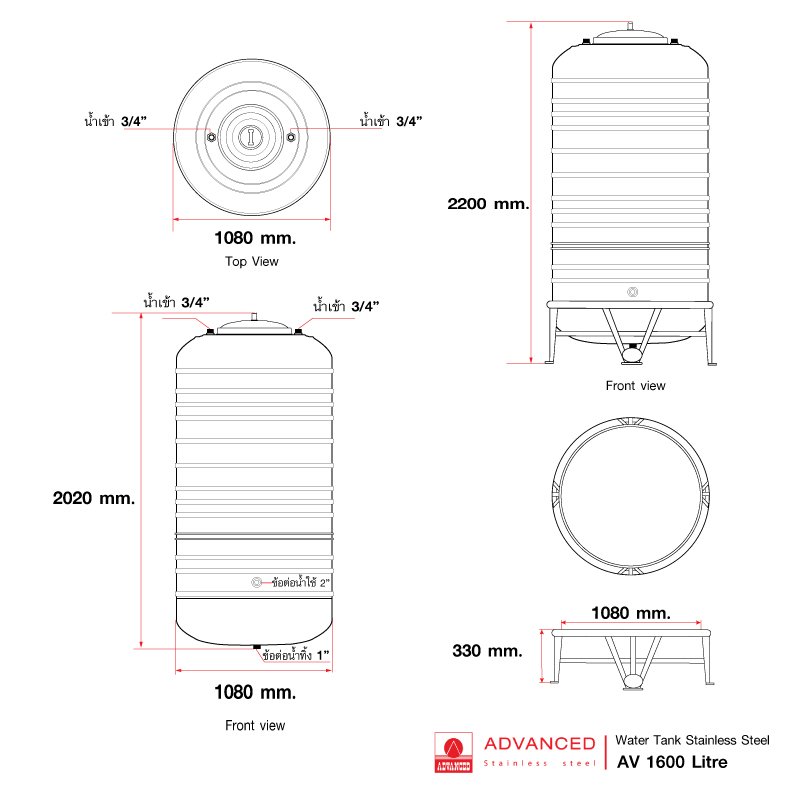 ถังเก็บน้ำสเตนเลสสตีล AV 2000