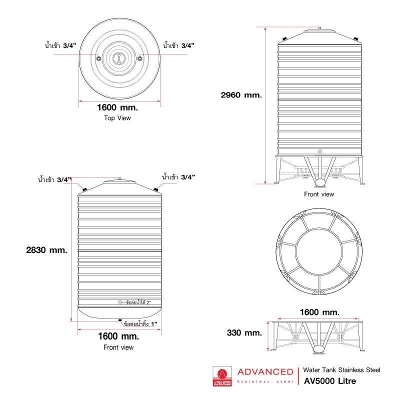 ถังเก็บน้ำสเตนเลสสตีล AV 2000