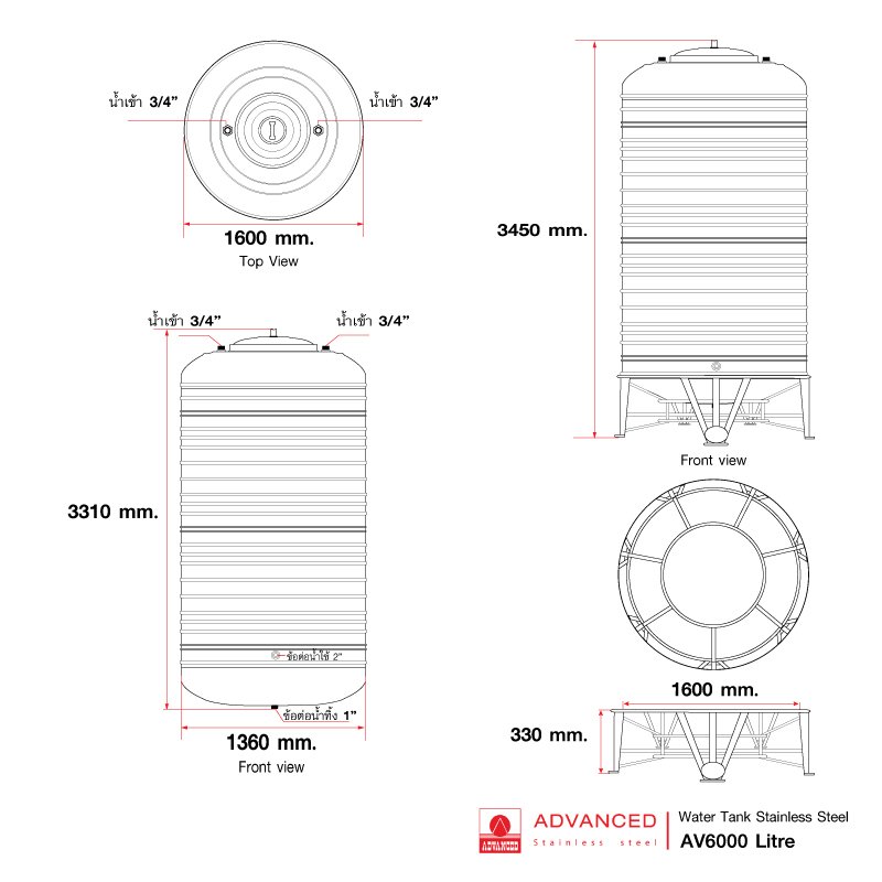 ถังเก็บน้ำสเตนเลสสตีล AV 2000
