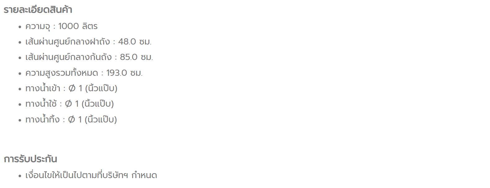 ตัวถังผลิตจาก ELIXIR วัสดุFood Contact materials ทึบแสงไม่เป็นตะไคร่น้ำ ทนต่อรังสี UV แข็งแรงทนทานนานกว่า 20 ปี มั่นใจ 100% ด้วยมาตรฐานอุตสาหกรรม TIS.1379-2551 สามารถสัมผัสน้ำกิน น้ำใช้ ในบ้านได้อย่างปลอดภัย และปราศจากสารปนเปื้อน ไร้กลิ่นไม่พึงประสงค์ ผ่านการรับรอง FDA จากอเมริกา ข้อต่อ ผลิตจากทองเหลือง ไม่เกิดสนิม รูปลักษณ์เรียบง่าย แต่สวยงาม ให้คุณใช้งานได้อย่างมั่นใจ เหมาะสำหรับใช้งานภายในบ้าน, อาคารสำนักงาน, ร้านอาหาร, ร้านคาเฟ่ หรือพื้นที่ใช้งานตามต้องการ