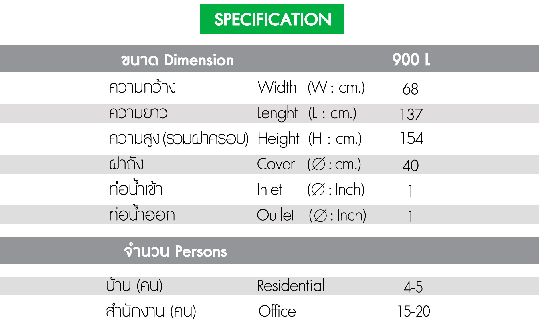 2. ขนาด รุ่น 900 ลิตร