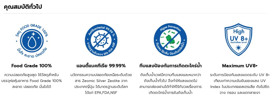 6. ป้องกันการเกิดตะไคร่น้ำ แสงแดดไม่สามารถส่องผ่านได้เนื่องจากถังหนากว่าแบรนด์ถังเก็บน้ำทั่วไป