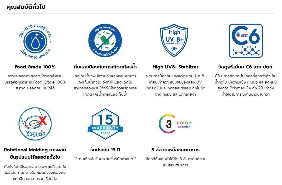 2. ถังเก็บน้ำผลิตจากโพลิเมอร์ C6 แข็งแรงกว่าถังเก็บน้ำทั่วไปถึง 20 เท่า