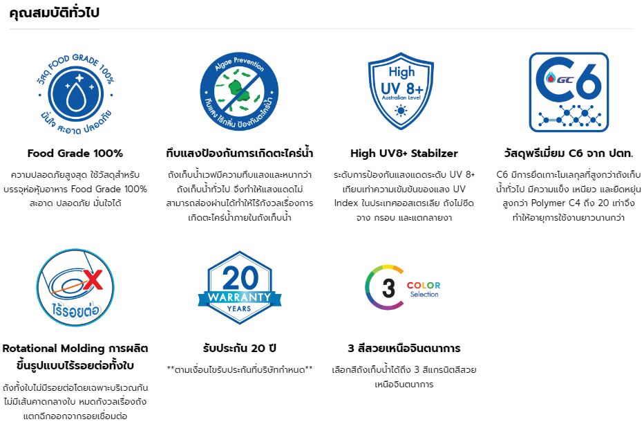 2. ถังเก็บน้ำผลิตจากโพลิเมอร์ C6 แข็งแรงกว่าถังเก็บน้ำทั่วไปถึง 20 เท่า