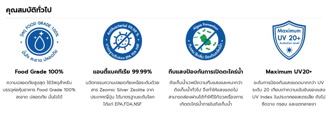 6. ป้องกันการเกิดตะไคร่น้ำ แสงแดดไม่สามารถส่องผ่านได้เนื่องจากถังหนากว่าแบรนด์ถังเก็บน้ำทั่วไป