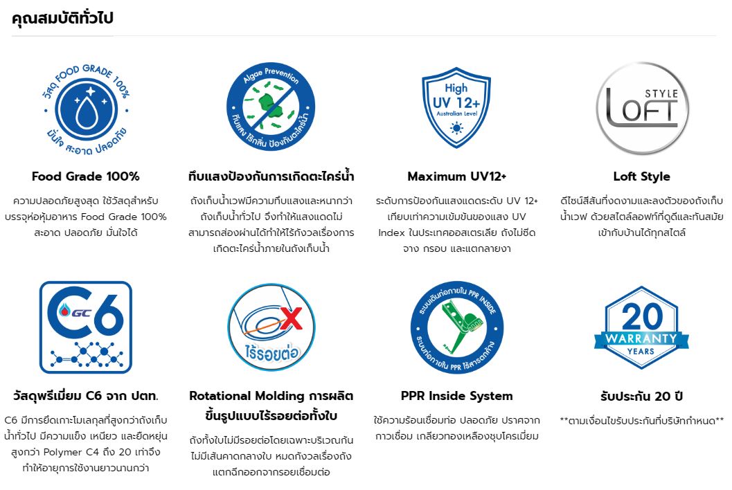 2. ถังเก็บน้ำผลิตจากโพลิเมอร์ C6 แข็งแรงกว่าถังเก็บน้ำทั่วไปถึง 20 เท่า