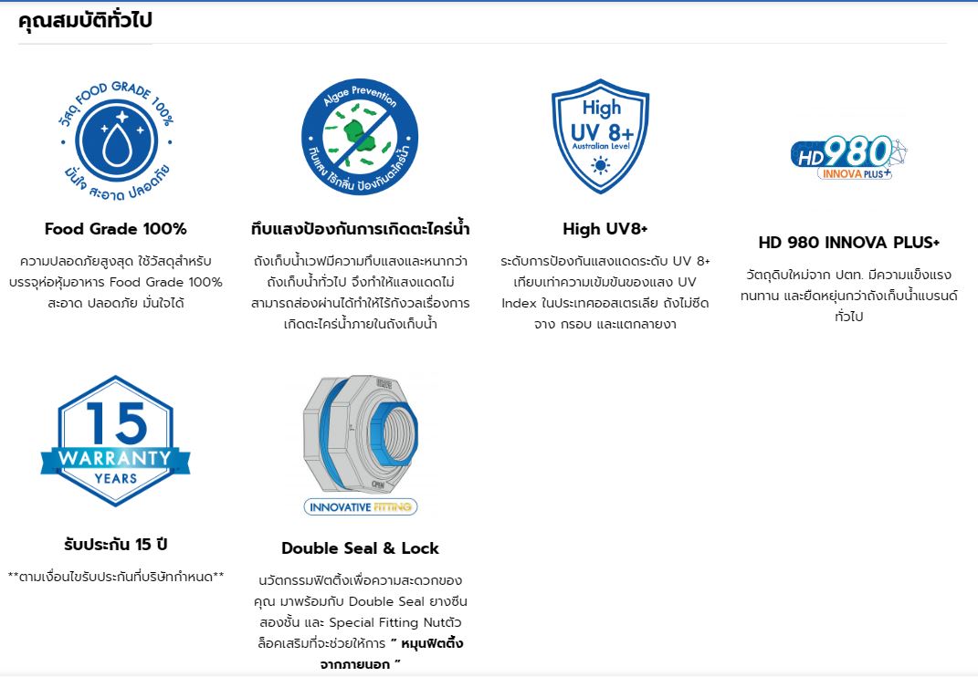 2. ถังเก็บน้ำผลิตจาก HD980 Innova plus วัตถุดิบใหม่ แข็งแรง ทนทาน ยืดหยุ่น